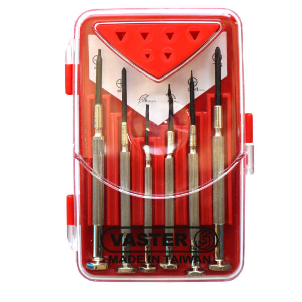 مجموعه 6 عددی پیچ گوشتی ساعتی VP001 واستر یکی از انواع کاربردی پیچ گوشتی بوده که توسط برند معتبر واستر طراحی و تولید شده است. از مشخصات این ابزار می توان به آلیاژ کروم وانادیوم برای نوک پیچ گوشتی ها، دارای6 خاصیت آهنربایی در نوک پیچگوشتی ها، ساخت کشور تایوان و دارای استحکام و دوام بالا اشاره کرد.