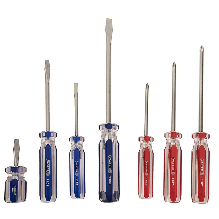 پیچ گوشتیها یکی از ابزارهای بسیار کاربردی محسوب میشوند که وجود آنها در هر کیف ابزاری ضروری است. تهیهی یک مجموعهی چند عددی از پیچ گوشتیها در مقابل تهیهی جداگانهی آنها مقرونبهصرفهتر خواهد بود. اگر قصد تهیهی مجموعهای کاربردی از پیچ گوشتیها را دارید محصول فوق گزینهی مناسبی است. این مجموعه دارای 7 پیچ گوشتی بوده که در اشکال دوسو و چهارسو طراحی شدهاند. تعداد پیچ گوشتیهای دوسوی این محصول 4 عدد بوده و سایزی برابر 75 × 5 و 100 × 6 و 125 × 6 و 150 × 8 میلیمتر دارند. 3 پیچ گوشتی دیگر نیز از نوع چهارسو بوده و در سایزهای 75 × 5 و 38 × 6 و 100 × 6 میلیمتر طراحی شدهاند. بخش فلزی این پیچ گوشتیها از آلیاژ کروم وانادیوم ساخته شده است. این آلیاژ استحکام بالایی دارد و مقاومت بالایی دربرابر خوردگی از خود نشان میدهد. این مجموعه پیچ گوشتی را شرکت «واستر» (Vaster) تولید میکند.