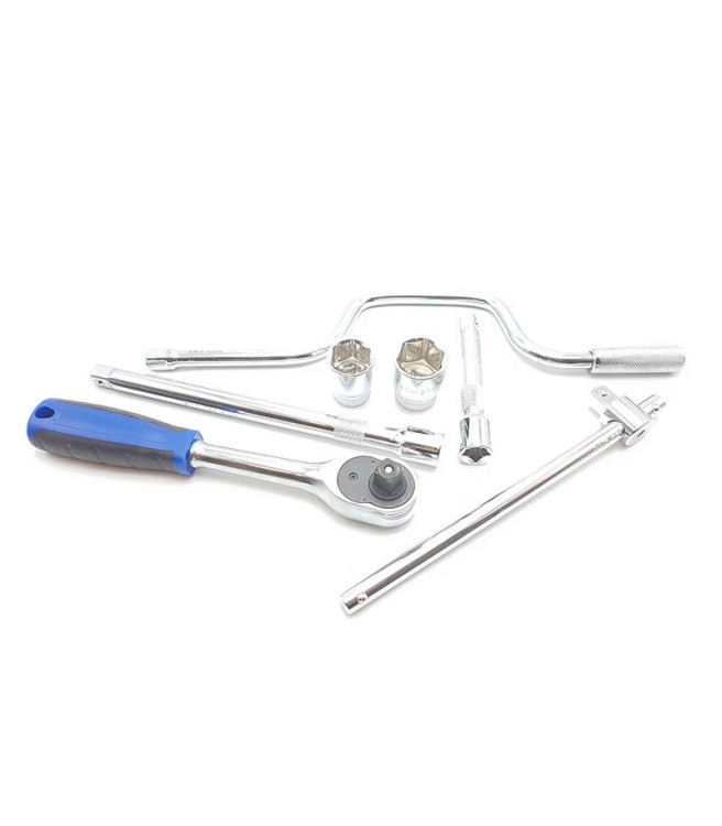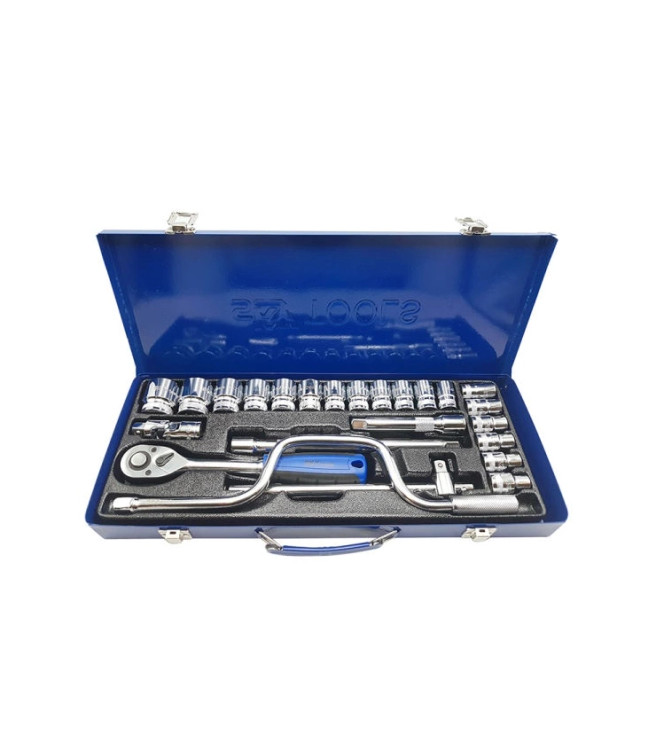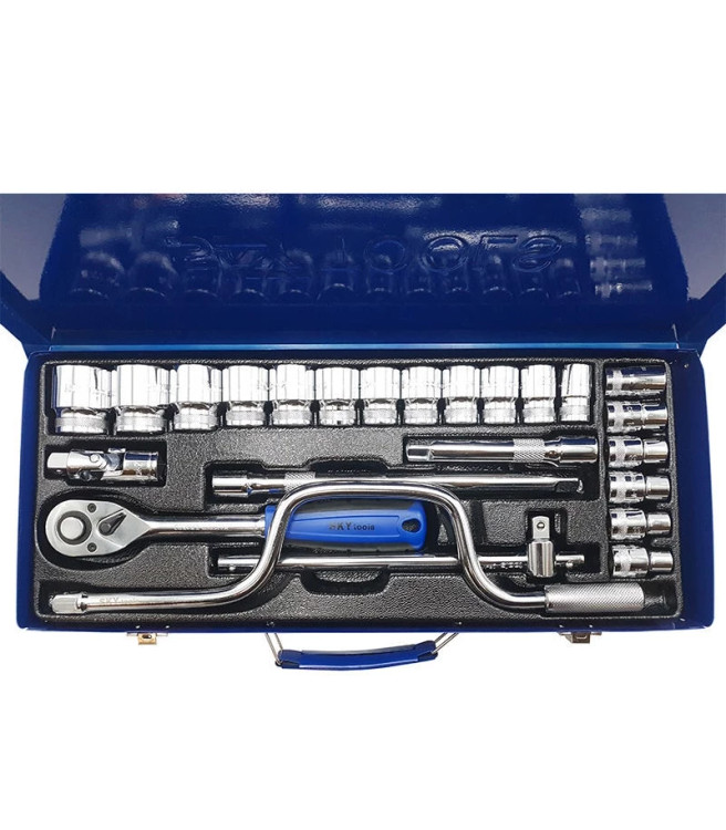 شماره آچار 10 , 11 , 12 , 13 , 14 , 15 , 16 , 17 , 18 , 19 , 20 , 21 , 22 , 23 , 24 , 27 , 30 , 32 دارای 2 عدد کمکی بکس 12.5 و 25 سانتی متر دارای 1 عدد دسته هندلی دارای 1 عدد دسته بکس کشویی دارای 1 عدد دسته بکس جغجغه ای دارای 1 عدد دسته بکس لقلقه ای