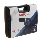 دستگاهی که در تصویر مشاهده میکنید توسط شرکت معتبر ان ای سی (NEC) تولید میشود. با کمک این دستگاه میتوان فرایند سوراخکاری و باز و بسته کردن پیچها را به خوبی انجام داد. این دستگاه مدل (NEC 1812) نام دارد و در گروه دستگاههای شارژی قرار میگیرد. محصول فوق نیروی خود را از طریق یک باتری 12 ولتی تامین میکند. این باتری از نوع لیتیوم بوده و ظرفیتی برابر 1.5 آمپر ساعت دارد. سرعت گردش این دستگاه قابل تنظیم است و کاربر با تغییر میزان فشار انگشت خود روی شستی میتواند آن را تغییر دهد. این سرعت در دو بازهی 350-0 و 1350-0 دور بر دقیقه قرار دارد. سرعت اول برای باز و بسته کردن پیچ مورد استفاده قرار میگیرد و سرعت دوم برای انجام سوراخکاری مناسب است. یکی از نقاط قوت این دستگاه حالت ضربهای دریل آن است. این حالت در سوراخکاری سطوح سخت، به کاربر کمک زیادی میکند . سه نظام به کار رفته در ساخت این دستگاه از نوع 10 میلیمتری خودکار بوده و حداکثر قطر سوراخکاری آن در چوب، فلز و مصالح به ترتیب برابر 18، 10 و 10 میلیمتر است. این دریل پیچگوشتی دارای لامپی ال ای دی بوده که موجب روشن شدن سطح مورد نظر میشود. دستهی محصول فوق به شکلی ارگونومیک طراحی شده و به روکشی ضد لغزش مجهز است.