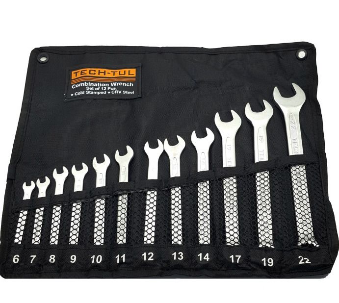 آچار یکسر تخت و یکسر رینگی تک تول مدل TECH-TUL مجموعه 12 عددی